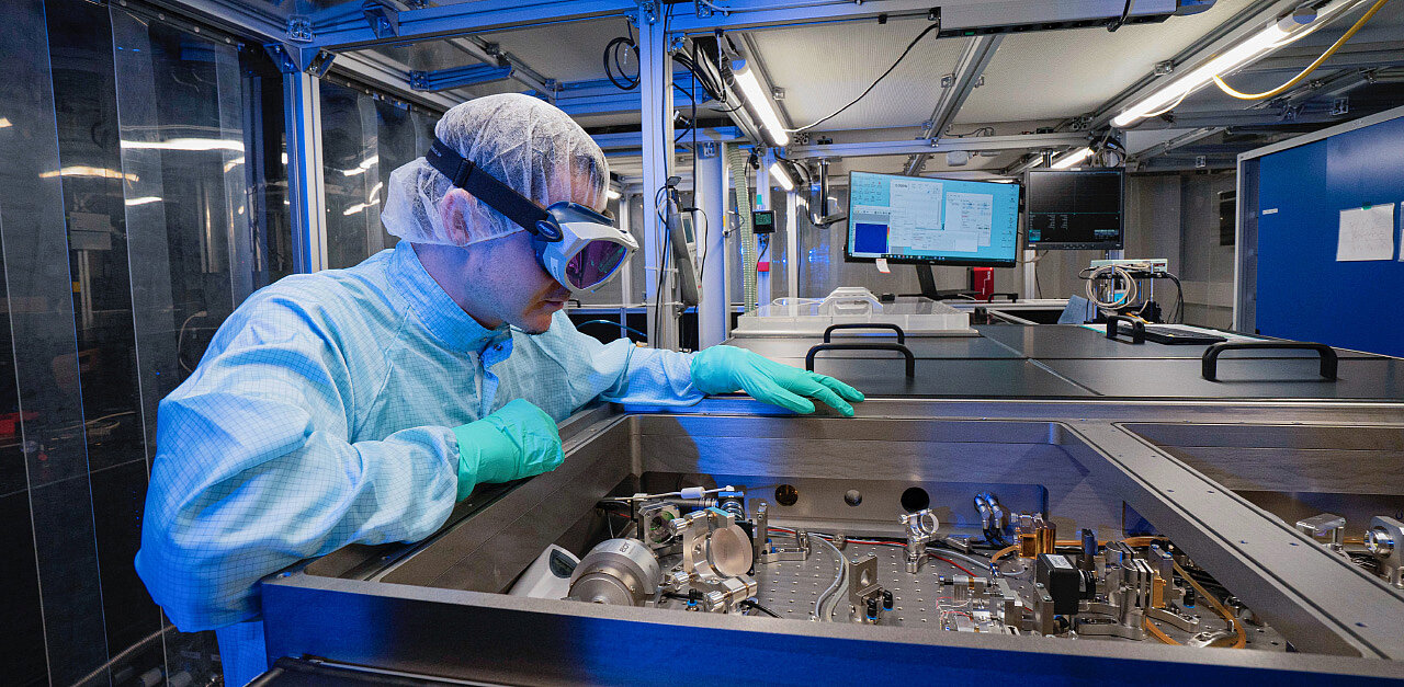 The ACCORD laser system is the result of a unique attempt to combine the advantages of high-power Yb-based gain media with the broad spectral coverage previously only available through Ti:Sapphire. It delivers few-cycle, mJ-scale pulses at a 50 kHz repetition rate, suitable for driving the next generation of experiments in attosecond physics. Here, Dr. Dimitrii Kormin inspects the cavity of the thin-disk regenerative amplifier.
