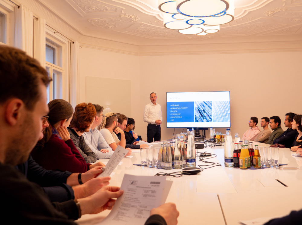 During the visit, the researchers were introduced to the company and the topic of intellectual property, including an insight into the European patent application process. They also got to see an actual example of a patent and its most important aspects. In addition to learning about the patent process, our students gained a deeper understanding of the job of a patent professional – from an overview of the activities to the qualifications and necessary skills such as an interest in technology, affinity to legal questions and a fast understanding of new and complex matters.